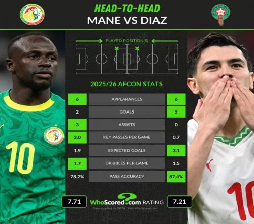体育播报1月19日宣 塞内加尔将在本届非洲杯决赛挑战东道主摩洛哥,whoscored也对比了双方明星球员本届赛事关键数据。