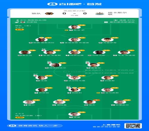 狼队00逼平纽卡4轮不败取6分喜鹊英超3连胜终结+各赛事3场不胜