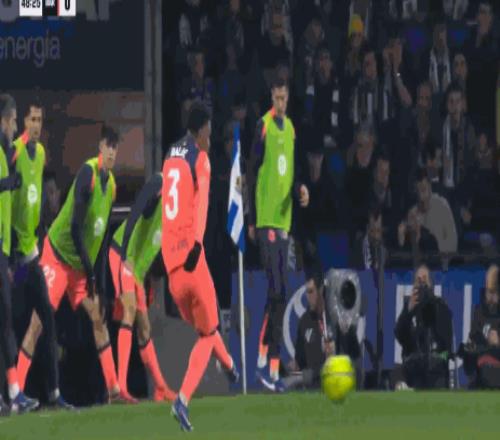 补时第3分钟,巴萨角球击中立柱弹出,当皇家社会主场门柱第5次阻挡巴萨进球后,门将雷米罗,都激动亲吻门柱表示感谢。