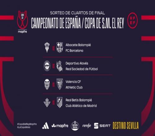 体育播报1月19日宣 本赛季国王杯1/4决赛抽签结果出炉,阿尔瓦塞特对阵巴萨,贝蒂斯对阵马竞。