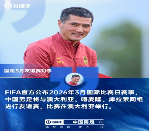 体育播报01月19日宣 FIFA今日官宣3月国际比赛日赛事,国足将与澳大利亚、喀麦隆、库拉索同组进行友谊赛,比赛在澳大利亚举行。