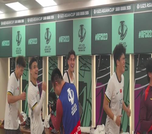 嗨爆!U23国足晋级亚洲杯决赛,球员们更衣室转圈魔性舞步!