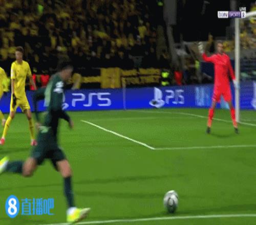 第10分钟,哈兰德斜插禁区内右侧,转身后左脚打门,皮球偏出球门左上角↓