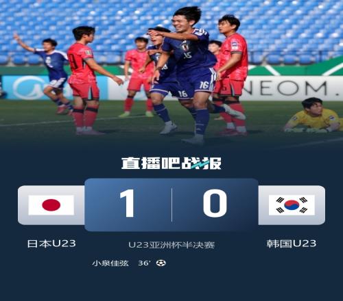 体育播报1月20日宣 北京时间1月20日19:30,U23亚洲杯半决赛日本U23迎战韩国U23的比赛在阿卜杜拉国王体育场进行,上半场道协丰两失单刀,荒木琉伟献精彩扑救,小泉佳弦补射破门首开记录,半场结束,U23日本1-0韩国U23。下半场张硕桓远射中楣,最终U23日本1-0韩国U23连续两届进决赛,决赛对手将是U23中国与U23越南之间的胜者。