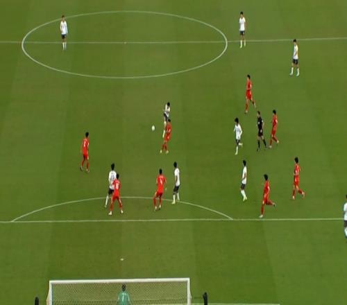 比赛第8分钟,国足U23传导至中路,陈泽仕禁区外爆射打高。